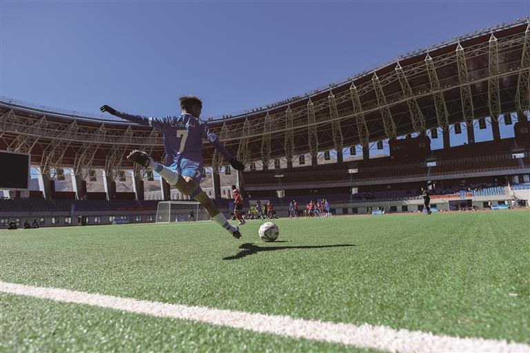 འདི་ནི་ཀྲུང་གོའི་གཞོན་ནུ་ལོ་ཆུང་གི་རྐང་རྩེད་སྤོ་ལོའི་རིམ་མཚུངས་འགྲན་བསྡུར་སྐབས་བཞི་པའི(བོད་ལྗོངས་འགྲན་ཁུལ)སྐྱེས་པའི་U17ཚོགས་ཆུང་གི་འགྲན་བསྡུར་ཁྲོད་ལྷ་སའི་རྐང་རྩེད་སྤོ་ལོའི་རུ་ཁག་གི་རུ་མི་ཞིག་གིས་ས་འཛུགས་སྤོ་ལོ་གཞུ་བཞིན་པ།