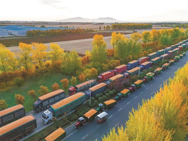 འདི་ནི་ཟླ་10ཚེས་15ཉིན། འབྲུ་ཚོང་རླངས་འཁོར་ཧེ་ལུང་ཅང་ཞིང་ཆེན་ཅ་མུའུ་སི་གྲོང་ཁྱེར་ཧྥུའུ་ཅིན་གྲོང་ཁྱེར་གྱི་འབྲུ་རིགས་གསོག་འཇོག་ཁེ་ལས་ཤིག་གི་སྒོ་འགྲམ་དུ་བང་སྒྲིག་བཞིན་པ།