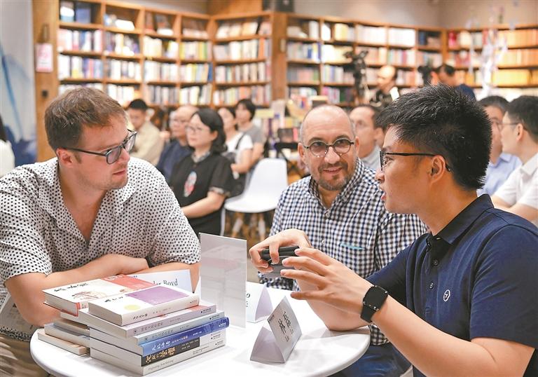ཉེ་ཆར། ཀྲུང་གོ་རྒྱལ་སྤྱིའི་སྤེལ་རེས་མཐུན་ཚོགས་དང་དེ་བཞིན་དབྱི་ཐ་ལི་དང་། ཨ་རི། པེར་ཀྲེམ་སོགས་རྒྱལ་ཁབ་9ཡི་རྒྱ་རིག་པ་མཁས་ཅན་12ལས་གྲུབ་པའི་རྟོག་ཞིབ་ཚོགས་པ་ཧྥུའུ་ཅན་ཞིང་ཆེན་ཧྥུའུ་ཀྲོའུ་གྲོང་ཁྱེར་དུ་གནས་པའི་ཏ་མོང་དཔེ་དེབ་ཁང་དུ་ཡོང་ནས་མཚོ་ངོགས་དཔེ་སྐྲུན་འགྲེམས་སྤེལ་ཚོགས་པའི་འཐུས་མི་དང་མཉམ་དུ་ཤེས་དཔལ་ཕན་ཚུན་མིག་དཔེར་འཛིན་པའི་སྐོར་གླེང་བ་དང་དཔེ་སྐྲུན་མཉམ་ལས་ཀྱི་གོ་སྐབས་གསར་པར་འཚོལ་ཞིབ་བྱས་ཤིང་། འདི་ནི་ཨ་རིའི《ཀྲུང་གོའི་དཔེ་དེབ་དཔྱད་བརྗོད》ཀྱི་རྩོམ་སྒྲིག་པ་གཞོན་པ་ལི་ལེ(མདུན་གྱི་གཡོན)དང་སི་ཕེན་ཝ་ལུན་ཤིས་ཡཱ་སློབ་ཆེན་ཨེ་ཤེ་ཡ་ཤར་མ་ཞིབ་འཇུག་ཁང་གི་དགེ་རྒན་ཆེ་མོ་བ་ཅཱ་པུའུ་ལི་ཨེའར·ལུའོ་ཆའོ(མདུན་གྱི་དཀྱིལ)ཡིས་ལས་དོན་པ་དང་སྤེལ་རེས་བྱེད་བཞིན་པ།