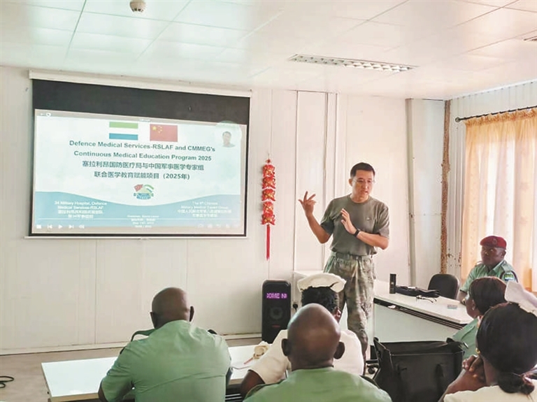 ཨ་ཧྥེ་རི་ཁའི་ནུབ་རྒྱུད་དུ་གནས་པའི་སི་ར་ལ་ཨོང་ནི་འཛམ་གླིང་ནས་དར་རྒྱས་འགྲོ་འགོར་ཤོས་ཀྱི་རྒྱལ་ཁབ་གྲས་ཤིག་རེད། ས་གཞི་དམར་པོ་དེའི་སྟེང་དུ། ནད་གཞིས་རྐྱེན་པས་མི་རྣམས་ལ་ཁུར་པོ་ལྕི་པོ་བཟོ་ཡི་ཡོད། 2016ལོ་ཚུན་དུ། ཀྲུང་གོ་མི་དམངས་བཅིངས་འགྲོལ་དམག་གིས་དམག་དོན་གསོ་རིག་རིགས་གཅིག་མཁས་ཅན་ཚོགས་ཆུང་ཁག་ཐེངས་མང་པོ་མངགས་ནས་ལེ་དབར་ཁྲི་སྟོང་བརྒལ་ཏེ་དེ་གར་སྨན་བཅོས་བདེ་ཐང་གི་ཞབས་འདེགས་ཞུས་པ་དང་། རིམ་རྩིས་བརྒྱབ་ན། ནད་པ་མི་ཐེངས་ཁྲི་1.13ལྷག་ཙམ་ལ་སྐྱོབ་བཅོས་བྱས་པ་རེད། སི་ར་ལ་ཨོང་གི་ཙུང་ཐུང་པི་ཨའོ་ཡིས“དམག་དོན་གསོ་རིག་རིགས་གཅིག་མཁས་ཅན་ཚོགས་ཆུང་གིས་ང་ཚོའི་སྨན་བཅོས་འཕྲོད་བསྟེན་བྱ་གཞག་ལ་ལེགས་སྐྱེས་གཟེངས་སུ་ཐོན་པ་ཕུལ་ཡོད། སི་ཀྲུང་སྨན་བཅོས་འཕྲོད་བསྟེན་མཉམ་ལས་ཀྱིས་རྒྱལ་ཁབ་གཉིས་པོའི་སྲོལ་རྒྱུན་མཛའ་གྲོགས་འཛུགས་པ་དང་འཕེལ་རྒྱས་གཏོང་བར་བདེན་དཔང་བྱས་ཡོད། འབྱུང་འགྱུར་རྒྱལ་ཁབ་གཉིས་པོའི་དམངས་སེམས་གཅིག་འབྲེལ་དང་མཉམ་ལས་གཉིས་ཕན་ལ་མུ་མཐུད་སྐུལ་འདེད་གཏོང་གི་ཡིན”ཞེས་བརྗོད་པ་རེད།