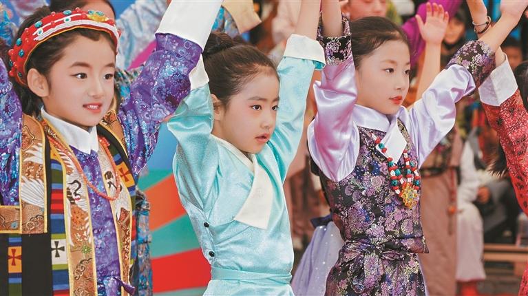 འདི་ནི་བྱེད་སྒོ་སྤེལ་ཡུལ་དུ་གྲོགས་པོ་ཆུང་ཆུང་ཚོས་འཁྲབ་སྟོན་བྱེད་བཞིན་པ།