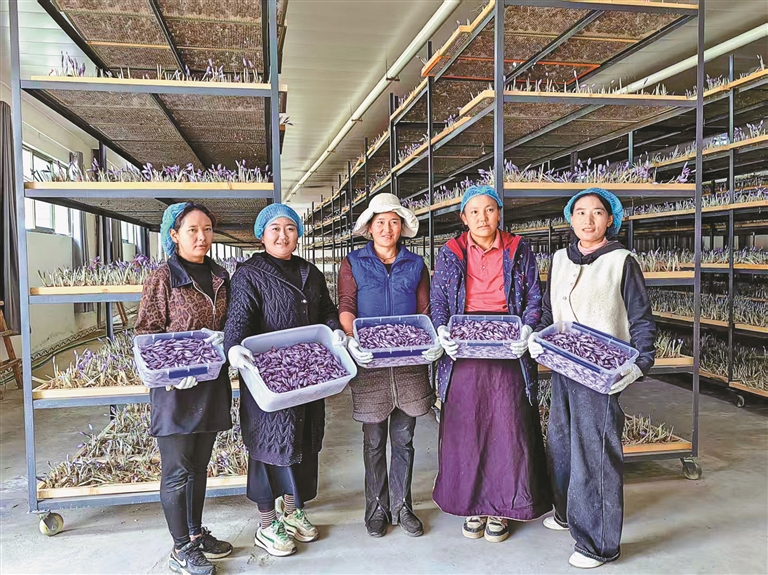 ཡུལ་མི་སྐལ་བཟང་དབང་མོའི་སི་རའི་ནང་བཀོག་མ་ཐག་པའི་ཁ་ཆེ་ཤ་སྐམ་རེད་འདུག ཁ་ཆེ་ཤ་སྐམ་མེ་ཏོག་བཞད་པ་ནས་ལྷུང་བའི་བར་དུས་ཚོད་ཆུ་ཚོད་ཁ་ཤས་ལས་མེད། གལ་ཏེ་དུས་ཐོག་ཏུ་མ་བཏུས་ན་མེ་ཏོག་ལྷུང་ཚེ་རིན་ཐང་གང་ཡང་མེད། “འདི་གར་ལས་ཀ་བྱས་ན་ཁྱིམ་དང་ཐག་ཉེ་པོ་རེད་ལ། ཉིན་གླ་ཡང་སྒོར་200ལེན་རྒྱུ་འདུག”ཅེས་སྐལ་བཟང་དབང་མོས་བཤད།