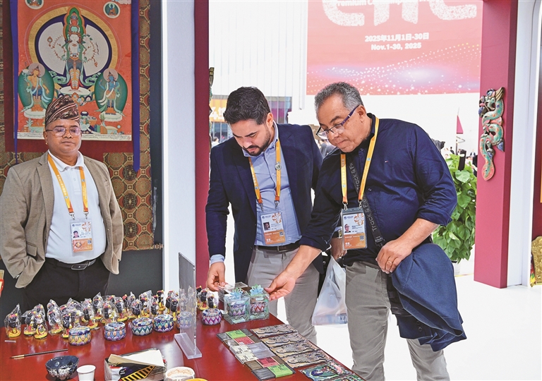 ཟླ་11ཚེས་5ཉིན། ཀྲུང་གོ་རྒྱལ་སྤྱིའི་ནང་འདྲེན་འགྲེམས་ཚོགས་སྐབས་བརྒྱད་པ་རྒྱལ་སྤྱིའི་ཚོགས་འགྲེམས་ལྟེ་གནས(ཧྲང་ཧའེ)སུ་འགོ་ཚུགས་ཤིང་། ནང་འདྲེན་འགྲེམས་ཚོགས་ཐོག་ལྷ་ས་གྲོང་ཁྱེར་ཚོང་དོན་ཅུས་ཀྱིས་རིག་གནས་དང་། སྤུས་རྟགས། སྤེལ་རེས། ཚོང་དོན་སོགས་ཟུར་ཚད་མང་པོར་དམིགས་ནས། མཉམ་འགུལ་འགྲེམས་འཁྲབ་དང་། སྤུས་རྟགས་ཁྱབ་སྤེལ། དངོས་ཟོག་འགྲེམས་ཚོང་སོགས་བྱ་ཐབས་སྣ་ཚོགས་བརྒྱུད། ཁེ་ལས་13དང་འགྲེམས་རྫས་སྟོང་ཕྲག་འགྲེམས་ཚོགས་ལ་ཞུགས་ཡོད་པ་རེད། འདི་ནི་ཀྲུང་གོ་རྒྱལ་སྤྱིའི་ནང་འདྲེན་འགྲེམས་ཚོགས་སྐབས་བརྒྱད་པའི་བོད་ལྗོངས་འགྲེམས་ཁང་དུ་སྐུ་མགྲོན་ཚོས་ཚོང་ཟོག་འདེམས་ཉོ་བྱེད་བཞིན་པ།