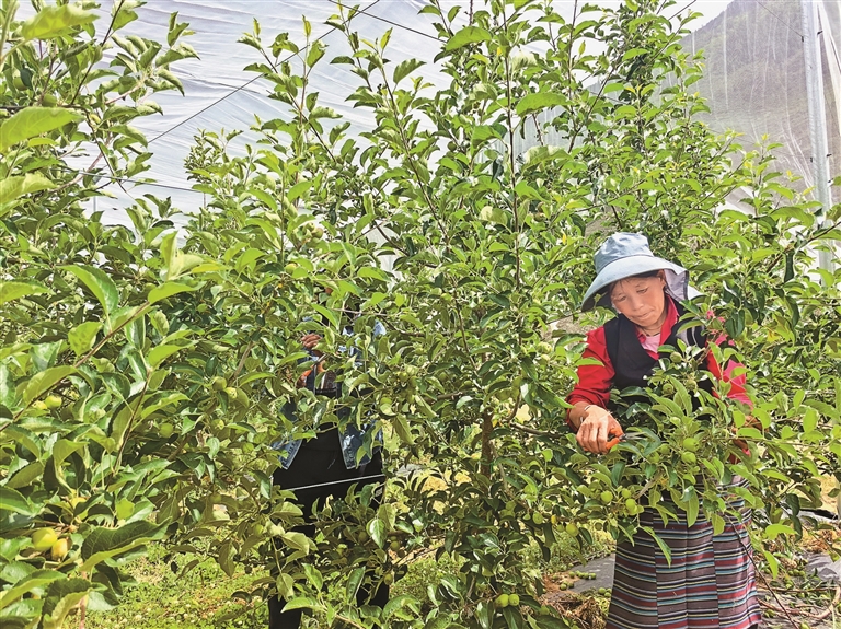 ཧྲང་ཁྲེང་ཐོན་ལས་ཀྱིས་ཞིང་འབྲོག་པའི་ཡོང་འབབ་འཕར་བར་རོཌ་རམ་དང་གྲོང་གསེབ་དར་རྒྱས་ལ་སྐུལ་འདེད་གཏོང་བར་གཞོལ་བཞིན་ཡོད་ལ། “ལག་རྩལ་གྱི་རིགས་གཅིག་མཁས་ཅན་དང་ས་གནས་དེ་གའི་ལས་མིའི”བརྒྱུད་རོགས་ཁྲིད་གསུམ་གྱི་ལམ་སྲོལ་བཙུཌ་ནས། 2024ལོར་རིམ་རྩིས་བརྒྱབ་ན་ཞིང་འབྲོག་པ་མི་ཐེངས་1000ལྷག་ཙམ་གསོ་སྦྱོང་བྱས་པ་དང་། མི་140ལྷག་ཙམ་ཧྲང་ཁྲེང་ཐོན་ལས་ཀྱི་ལས་མི་ངོ་མ་དང་ལག་རྩལ་གྱི་རྐང་འཛིན་པར་གྱུར་ཡོད། དེ་དང་ཆབས་ཅིག ཐོན་ལས་གླིང་གིས་ས་གནས་དེ་གའི་གྲོང་མིའི་ས་ཞིང་བོགས་མར་བླངས་པ་དང་གྲོང་མི་དང་འཕྲུལ་ཆས་བོགས་གཏོང་གན་རྒྱ་བཞག་ཡོད། ཤིང་འབྲས་བསྡུ་བའི་དུས་ཚིགས་ཤར་རིམ་བཞིན་ཧྲང་ཁྲེང་ཐོན་ལས་ཚོགས་པས་ཐོན་ལས་གླིང་གི་རྟེན་གཞིའི་ཉེ་འགྲམ་གྱི་གྲོང་མི་གླས་ནས་ཁོང་ཚོའི་ཡོང་འབབ་འཕར་བར་རོགས་རམ་བྱེད་ཀྱི་ཡོད།