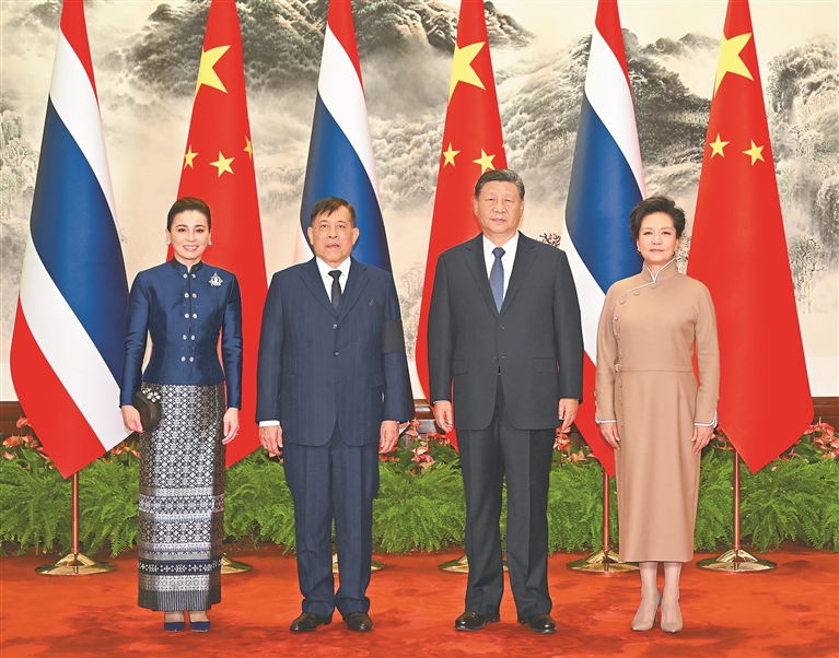 ཟླ་11ཚེས་14ཉིན་གྱི་སྔ་དྲོར། རྒྱལ་ཁབ་ཀྱི་ཀྲུའུ་ཞི་ཞི་ཅིན་ཕིང་གིས་པེ་ཅིང་མི་དམངས་ཚོགས་ཁང་ཆེ་མོར་ཀྲུང་གོར་རྒྱལ་དོན་འཚམས་འདྲིར་ཕེབས་པའི་ཐེ་ལན་གྱི་རྒྱལ་པོ་ཝ་ཅི་ལཱ་ལུང་ཀུང་དང་མཇལ་འཛོམས་གནང་ཞིང་། འདི་ནི་ཞི་ཅིན་ཕིང་དང་སྐུ་ཟླ་ཕེང་ལི་ཡོན་རྣམ་གཉིས་ཀྱིས་རྒྱལ་པོ་ཝ་ཅི་ལཱ་ལུང་ཀུང་དང་བཙུན་མོ་སུའུ་ཐི་ཏ་དང་ལྷན་དུ་སྐུ་པར་སྐྱོན་བཞིན་པ།