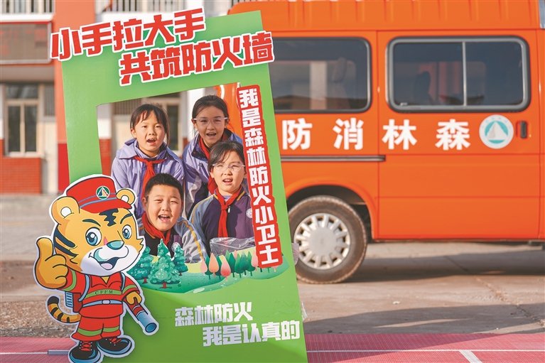 མིག་སྔ་ནི་ཧོ་ལན་རི་བོའི་ནགས་ཚལ་དུ་མེ་སྐྱོན་ཐོན་ཉེན་ཆེ་བའི་ནམ་དུས་ཡིན་པས། ཉིང་ཞ་ཧོ་ལན་རི་བོའི་རྒྱལ་ཁབ་རིམ་པའི་རང་བྱུང་སྲུང་སྐྱོང་ཁུལ་དོ་དམ་ཅུས་ཀྱི་ལས་དོན་པས་མེ་ཟོན་བདེ་འཇགས་ཤེས་བྱ་སློབ་གྲྭར་དྲིལ་བསྒྲགས་བྱེད་པའི་ཆེད་དོན་བྱ་སྤྱོད་སྤེལ་ཡོད། ཚན་རིག་ཤེས་བྱ་ཁྱབ་གདལ་དྲིལ་བསྒྲགས་དང་སྒྲིག་ཆས་འགྲེམས་སྟོན་དང་ཉམས་ལེན་སོགས་བརྒྱུད་སྲུང་སྐྱོང་ཁུལ་ཉེ་འཁོར་གྱི་སློབ་མའི་ནགས་ཚལ་མེ་ཟོན་གྱི་འདུ་ཤེས་ཟབ་ཏུ་བཏང་བ་ལས་ཧོ་ལན་རི་བོའི་སྐྱེ་ཁམས་བདེ་འཇགས་སྲུང་བཅད་ཐུན་མོང་ཐོག་བརྟན་དུ་ཕྱིན་ཡོད། འདི་ནི་ཉིང་ཞ་དབྱིན་ཁྲོན་གྲོང་ཁྱེར་ཤིས་ཞ་ཆུས་ཀྱི་སློབ་ཆུང་དང་པོར་སློབ་མ་ཚོས་མེ་ཟོན་བདེ་འཇགས་ཤེས་བྱ་སློབ་གྲྭར་དྲིལ་བསྒྲགས་བྱེད་པའི་ཆེད་དོན་བྱེད་སྒོ་སྤེལ་ཡུལ་དུ་དྲན་རྟེན་པར་རྒྱག་བཞིན་པ།