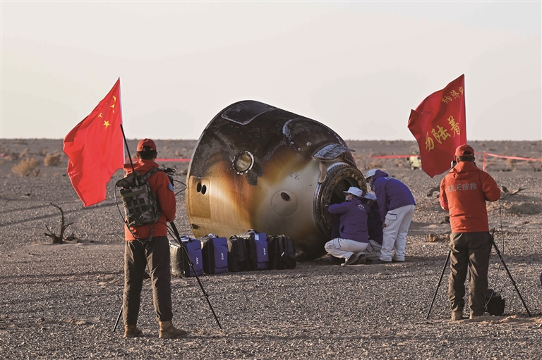 ཀྲུང་གོ་མི་བཞུགས་འཇིག་རྟེན་འཕུར་སྐྱོད་ལས་གྲྭ་གཞུང་དོན་ཁང་གིས་གནས་ཚུལ་སྤེལ་བར་གཞིགས་ན། པེ་ཅིང་གི་དུས་ཚོད་ཟླ་11ཚེས་14ཉིན་གྱི་ཆུ་ཚོད་16དང་སྐར་མ་40ཡི་ཐོག ལྷ་གྲུ་ཨང་ཉེར་གཅིག་པའི་མི་བཞུགས་འཕུར་གྲུའི་ཕྱིར་ལོག་ཚང་ཤར་རླུང་འབབ་ཐང་དུ་བདེ་བླག་ངང་བབས་པ་རེད། ཕྱིར་ལོག་ཚང་གི་ཚང་སྒོ་ཕྱེ་རྗེས། གསོ་རིག་ལྟ་སྐུལ་དང་གསོ་རིག་འགན་སྲུང་མི་སྣས་ས་གནས་ས་ཐོག་ཏུ་ལྷ་གྲུ་ཨང་ཉི་ཤུ་པའི་ཚོ་ཆུང་གི་འཇིག་རྟེན་འཕུར་སྐྱོད་པ་ཁྲེན་ཏུང་དང་། ཁྲེན་ཀྲུང་རུའེ། ཝང་ཅེ་བཅས་ཀྱི་གཟུགས་པོར་བརྟག་དཔྱད་བྱས་རྗེས་བདེ་ཐང་ཡིན་པ་གཏན་འཁེལ་བྱས་པ་རེད།