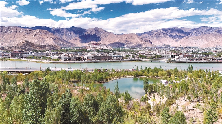 རི་སྔོན་ཆུ་དྭངས་གསེར་དངུལ་རི་ལས་ལྷག མི་དམངས་མང་ཚོགས་ལ་ཆེས་ཀུན་ཕན་གྱི་དམངས་འཚོའི་བདེ་རྩ་ཡིན་པའི་སྐྱེ་ཁམས་ཁོར་ཡུག་བཟང་པོ་མཉམ་སྤྱོད་བྱེད་དུ་འཇུག་པའི་དུས་མཚུངས་སུ། སྐྱེ་ཁམས་འཛུགས་སྐྱོང་གི་ཁྲོད་སྐྱེ་ཁམས་ཀྱི་ཡོང་འབབ་རག་པ་དང་ཕྱུག་འགྱུར་གྱི་ལམ་དུ་སྐྱོད་ཐུབ་པ་མ་ཟད། ལྷོ་རི་བྱང་རིའི་སྔོ་འགྱུར་ལས་གྲྭར་ཡང་སྒུལ་ཤུགས་དང་གསོན་ཤུགས་ཀྱང་རྒྱུན་ཆད་མེད་པར་འཕེལ་ཡོད། “ལྷོ་བྱང་རི་བོར་སྔོ་ལྗང་གོས་བཟང་བཀླུབས། གནའ་བོའི་གྲོང་ཁྱེར་དྭངས་གཙང་ཆུ་མོས་བསྐོར་བའི”ས་མཐོའི་གནས་འཕྲོད་གྲོང་ཁྱེར་གྱི་ཉམས་བཟང་ཡང་མངོན་སུམ་འཚོ་བའི་ནང་མཐོང་ཐུབ་ངེས་རེད།