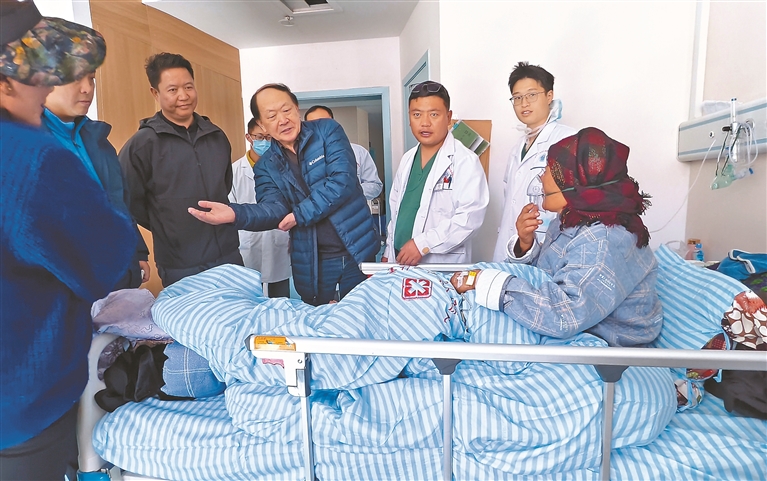 ཉེ་ཆར། མལ་གྲོ་གུང་དཀར་རྫོང་མི་དམངས་སྨན་ཁང་གི་གཤགས་བཅོས་ཁང་དུ་ནན་ཅིང་གྲོང་ཁྱེར་སྨན་ཁང་དང་པོའི་རུས་ཚིགས་ཕྱི་ནད་ཚན་ཁག་གི་རིགས་གཅིག་མཁས་ཅན་ཚོགས་པས་ས་གནས་དེ་གའི་སྨན་དོན་མི་སྣ་དང་མཉམ་ལས་བྱས་ཏེ། པུས་ཚིགས་དང་རུས་གཤིས་ཚིགས་ནད་ཚབས་ཆེ་བའི་ནད་པ་16ལ་འཕྲུལ་མིས་རུས་ཚིགས་བརྗེ་བར་རམ་འདེགས་བྱེད་པའི་གཤགས་བཅོས་བདེ་བླག་ངང་བྱས་པ་རེད། ཚད་བརྒལ་དེ་ཐོག་ནས་ནན་ཅིང་གི་སྤུས་ལེགས་སྨན་བཅོས་ཐོན་ཁུངས་མུ་མཐུད་ས་མཐོར་སྤྱད་ནས་དམངས་འཚོར་ཕན་པ་ཆེན་པོ་བཏགས་པ་མཚོན་ཡོད།