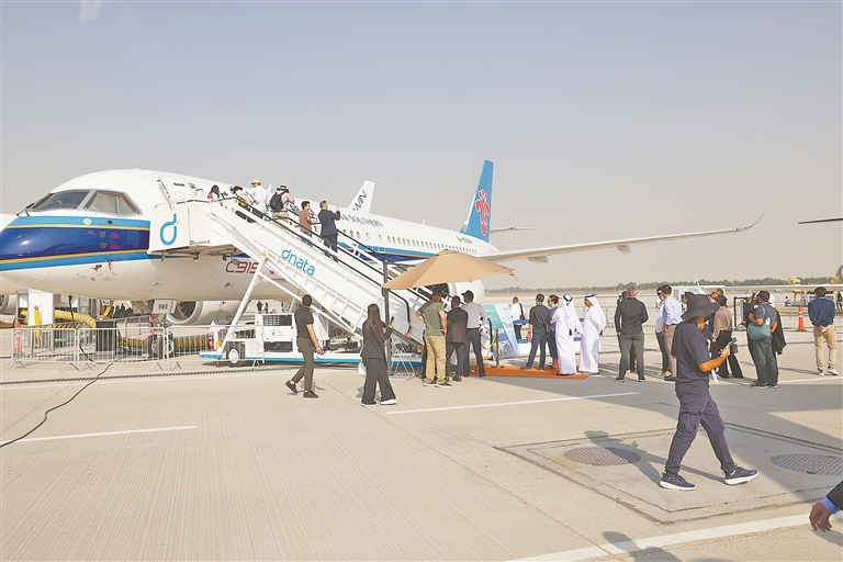 འདི་ནི་མཁའ་འགྲུལ་དང་འཇིག་རྟེན་འཕུར་སྐྱོད་འགྲེམས་སྟོན་རིང་ལྟད་མོ་བས་གནམ་གྲུ་C919ལ་ལྟ་སྐོར་བྱེད་བཞིན་པ།