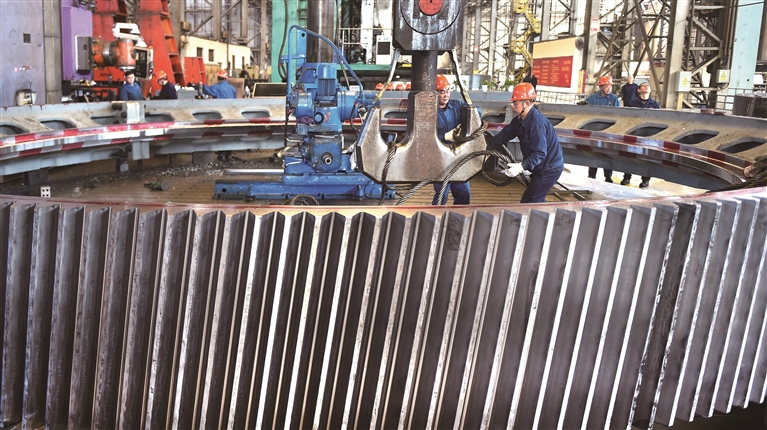 དུས་ཚིགས་བཞི་པར་སླེབས་ཚུན། ཧོ་ནན་ཞིང་ཆེན་ལུའོ་དབྱང་གྲོང་ཁྱེར་ཅན་ཤིས་ཆུས་སུ་གནས་པའི་ཀྲུང་ཤིན་ལྕི་བའི་བཟོ་ལས་ཐོན་སྐྱེད་འཁོར་ཁང་དུ་འཕྲུལ་འཁོར་གྱི་འུར་སྒྲས་ཁེངས་ནས་དབོར་འདྲེན་གྱི་ལས་ལ་བྲེལ་བའི་རྣམ་པ་མངོན་ཞིང་། བཟོ་པ་ཚོས་ཐོན་སྐྱེད་སྒྲུབ་རིམ་དུ་ངར་ཤུགས་སྒྲིམ་བཞིན་དུས་ཚོད་སྐར་ཆ་ཙམ་ཡང་བརྩོན་ལེན་གྱིས་ཕྱིར་གཏོང་གི་སོ་འཁོར་ཆེན་པོ་དང་སྦུག་གཟུགས་སོགས་གཏེར་སྤྱོད་ཐོན་རྫས་ཀྱི་མངགས་ཐོ་ཁག་གཅིག་བཟོ་བར་བྲེལ་ནས་ལོ་མཇུག་གི་མཐའ་མའི་གདོང་མཆོང་འགོ་བཙུགས་ཏེ། ལོ་ཧྲིལ་པོའི“མཇུག་བསྡུའི་དམག་འཐབ”ཡག་པོ་རྒྱག་པར་ཧུར་བརྩོན་ཆེན་པོ་བྱེད་བཞིན་ཡོད།