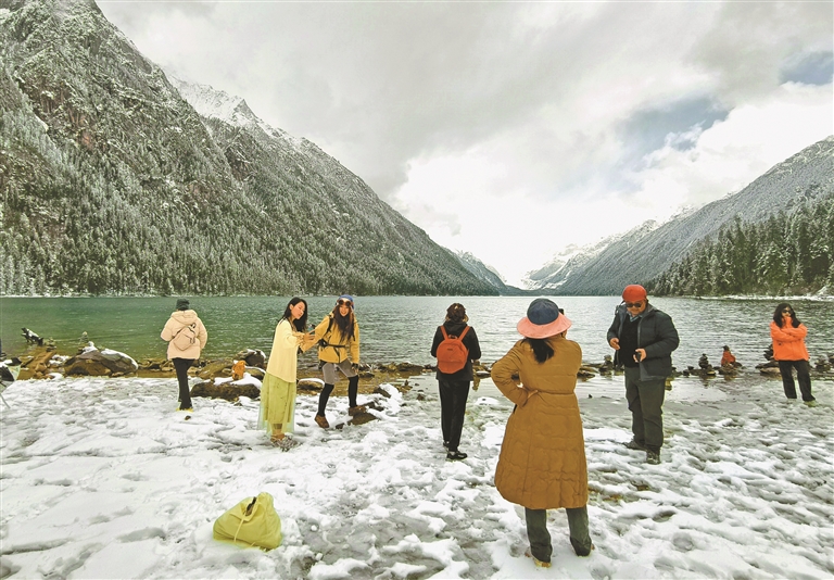 འདི་ནི་ལྷོ་ཁ་གྲོང་ཁྱེར་ཕུ་མ་གཡུ་མཚོའི་འགྲམ་དུ་ཡུལ་སྐོར་བས་མཚོ་མོའི་ཡུལ་ལྗོངས་ལ་པར་བརྒྱབ་ནས་ས་མཐོའི་དགུན་དུས་ཀྱི་མཛེས་ལྗོངས་ཉམས་སུ་མྱོང་བཞིན་པ། འདི་ག་ཚགས་པར་གྱི་གསར་འགོད་པ། ཝང་མེན་གྱིས་པར་བརྒྱབ།