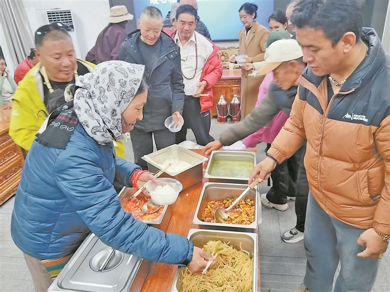 རྒྱ་ཆེའི་གྲོང་མི་ཚོར“ལྕེ་རྩེ”ནས“སེམས་གཏིང”བར་གྱི་དྲོ་སྐྱིད་ཚོར་དུ་འཇུག་ཆེད། 2025ལོར། སྡེ་ཁུལ་དེས་སྲིད་གཞུང་གིས་ཁ་གསབ་སྤྲོད་པ་དང་ཁེ་ལས་ཀྱིས་གཉེར་སྐྱོང་བྱེད་པའི་རྣམ་པ་གསར་གཏོད་བྱས་ནས་ཟ་ཁང་བསྐྲུན་ཐོག་ཆེད་ལས་མ་བྱན་གདན་དྲངས་ནས་ས་མཐོའི་གྲོང་མིའི་གོམས་གཤིས་ལྟར་ཚལ་ཐོ་བཟོས་པ་སྟེ། རྒན་རྒོན་ཚོར་ཚྭ་དང་ཞག་ཚི་ཉུང་བའི་ཚགས་ཤ་ལབ་སྒོར་དང་ནས་ཞིབ་མོག་མོག་འབོལ་པོ་གྲ་སྒྲིག་བྱེད་ཀྱི་ཡོད་པ་དང་། ལས་ཀར་འགྲོ་མཁན་ཚོར་སྟབས་བདེ་ཞིང་བདེ་ཐང་གི་ཟ་མ་གྲ་སྒྲིག་བྱེད་ཀྱི་ཡོད་པ་རེད།