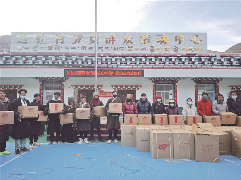 འདི་ནི་རྟ་རྭ་གྲོང་ཚོའི་མང་ཚོགས་ཚོས་ཀྲུང་དབྱང་སྐུ་ཚབ་ཚོགས་པས་བསྩལ་བའི་ཕྱག་རྟགས་ལེན་བཞིན་པ།