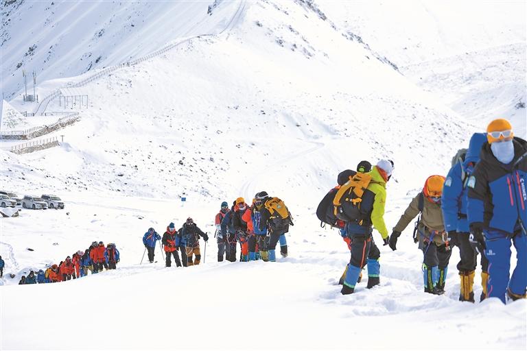 འདི་ནི་ཟླ་4ཚེས་29ཉིན་ནས་ཟླ་5ཚེས་3ཉིན་བར་2025ལོའི་ཀྲུང་གོའི་བོད་ལྗོངས་རི་འཛེག་འདུ་ཚོགས་ཆེ་མོ་སྐབས་ཉེར་གཉིས་པ་དང་ཀྲུང་གོ་བས་སླར་ཡང་ཇོ་མོ་གླང་མར་འཛེགས་ནས་ལོ་ངོ་50འཁོར་བར་དྲན་གསོ་ཞུ་བའི་རིམ་སྤེལ་བྱེད་སྒོ་སྟེ། ལྷོ་སྟོད་ལ་འཛེག་པ་དང་མྱུལ་དཔྱད་ཀྱི་བྱེད་སྒོ་ལྷ་ས་གྲོང་ཁྱེར་ཡངས་པ་ཅན་གྲོང་རྡལ་དུ་སྤེལ་ཞིང་། འདི་ནི་ཟླ་5ཚེས་2ཉིན་རི་འཛེག་ལ་དགའ་པོ་ཡོད་མཁན་ཚོ་ལྷོ་སྟོད་ལར་འཛེག་བཞིན་པ། (དཔྱད་གཞིའི་པར་རིས)
