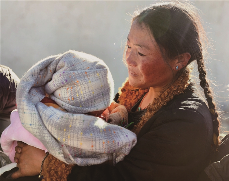 འདི་ནི་བོད་ལྗོངས་དིང་རི་རྫོང་གྲམ་མཚོ་ཤང་མཐོང་ལས་གྲོང་ཚོའི་གནོད་འཚེ་ཕོག་པའི་མང་ཚོགས་མཚོ་མོས་ཕྲུ་གུ་པང་དུ་ཁུར་ནས་དགུན་ཆས་ལེན་བཞིན་པ།