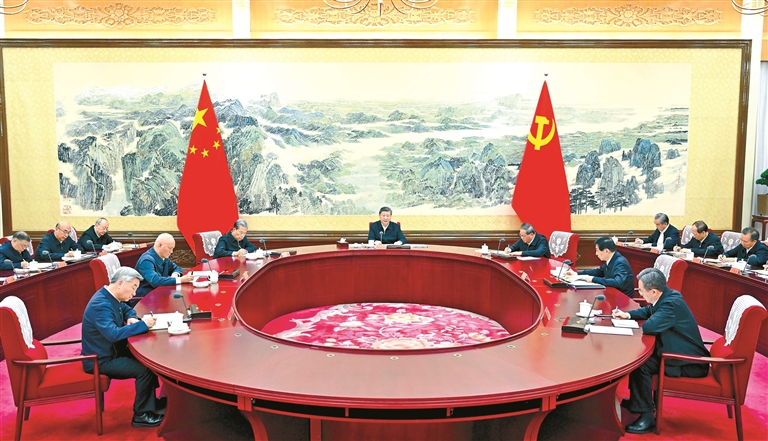 ཀྲུང་གུང་ཀྲུང་དབྱང་གི་སྤྱི་ཁྱབ་ཧྲུའུ་ཅི་ཞི་ཅིན་ཕིང་གིས་ཚོགས་འདུ་གཙོ་སྐྱོང་དང་གསུང་བཤད་གལ་ཆེན་གནང་བ།