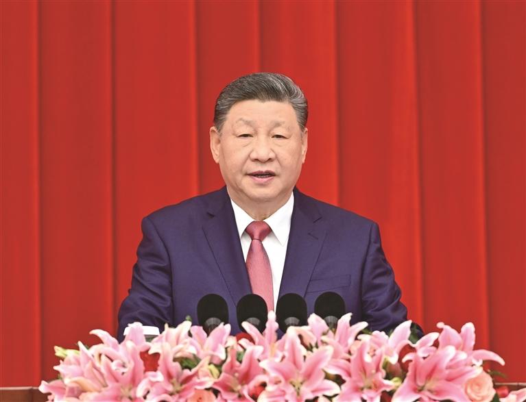 ཀྲུང་གུང་ཀྲུང་དབྱང་གི་སྤྱི་ཁྱབ་ཧྲུའུ་ཅི་དང་། རྒྱལ་ཁབ་ཀྱི་ཀྲུའུ་ཞི། ཀྲུང་དབྱང་དམག་ཨུད་ཀྱི་ཀྲུའུ་ཞི་བཅས་ཡིན་པའི་ཞི་ཅིན་ཕིང་གིས་གསུང་བཤད་གལ་ཆེན་གནང་ཞིང་། ཁོང་གིས་འཆར་གཞི་བཀོད་ཟིན་པ་དང་འབད་འཐབ་ཀྱི་དུས་ཚོད་འཚམ་ཤོས་སུ་འཁེལ་ཡོད། ཏང་ཡོངས་དང་རྒྱལ་ཡོངས་མི་རིགས་ཁག་གི་མི་དམངས་ཚོས་དེ་བས་མཐུན་སྒྲིལ་དམ་ཟབ་བྱས་ཏེ། ཀུན་སེམས་གཅིག་སྒྲིལ་དང་འབད་འབུངས་ཡར་བརྩོན་དང་། དངོས་སྒྲུབ་ལ་བརྟེན་ནས་གྲུབ་འབྲས་རླབས་པོ་ཆེ་གཏོད་པ། གསར་གཏོད་ལ་བརྟེན་ནས་འབྱུང་འགྱུར་དབང་ཐུབ་པ་བཅས་བྱས་ཏེ་ཀྲུང་གོའི་ལུགས་ཀྱི་དེང་རབས་ཅན་འཛུགས་སྐྲུན་གྱི་རྣམ་པ་གསར་པ་རྒྱུན་ཆད་མེད་པར་གཏོད་དགོས་པའི་ནན་བཤད་གནང་བ་རེད།