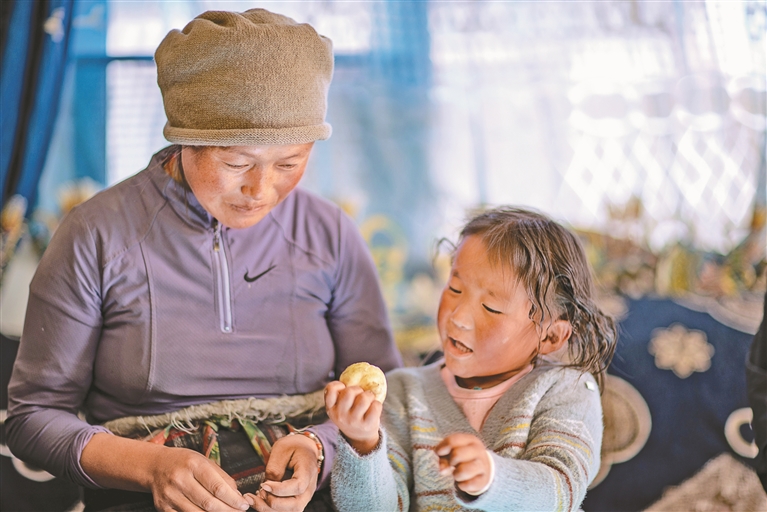 དིང་རི་རྫོང་གྲམ་མཚོ་ཤང་མཐོང་ལས་གྲོང་ཚོའི་ལོ་ན་གཞོན་པའི་ཨ་མ་ཚེ་རིང་ལྷ་མོར་མཚོན་ན། 2025ལོའི་ཟླ་1ཚེས་7ཉིན་བརྒྱབ་པའི་ས་ཡོམ་རིམ་པ་6.8ཁྲོད་དུ་ལོ་3ལ་སླེབས་པའི་ཕྲུ་གུ་ཞིག་རྐྱེན་ལམ་དུ་ཤོར་བ་རེད། གསར་འགོད་པ་2025ལོའི་ཟླ་10པར་ཚེ་རིང་ལྷ་མོ་དང་འཕྲད་སྐབས། ཚེ་རིང་ལྷ་མོའི་ཁྱིམ་གྱི་སྡོད་ཁང་གསར་པ་བསྐྲུན་ཟིན་ནས་རྩིས་སྤྲད་ཡོད་པ་མ་ཟད། ཁོང་ལ་སླར་ཡང་མངལ་སྦྲུམ་ཡོད་ལ་སྐྱེ་ཟླ་ཟླ་12པ་རེད་འདུག “ཕྲུ་གུ་སྐྱེ་སྐབས་ང་ཚོ་སྡོད་ཁང་གསར་པར་སྤོས་ཡོད་ངེས་རེད”ཅེས་ཁོང་གིས་རེ་བས་ཁེངས་བཞིན་བཤད། ད་ཆ་ས་ཡོམ་གྱི་གནོད་འཚེ་ཕོག་ནས་ལོ་གཅིག་ཙམ་སོང་བ་དང་། ཚེ་རིང་ལྷ་མོའི་བུ་མོ་ཆུང་བ་དབྱངས་ཅན་ལྷ་མོ་སྐྱེས་ནས་ཟླ་བ་གཅིག་སོང་ཞིང་། དེ་སྔོན་ས་ཡོམ་རྒྱག་སྐབས་ཁོང་གིས་པང་དུ་ཉར་བའི་ཟླ་བ་གཅིག་ལྷག་ཙམ་གྱི་ཕྲུ་གུ་དམར་འབྱར་སྐལ་བཟང་དཔལ་འཛོམས་ད་ཆ་གོམ་པ་སྤོས་ནས་གང་སར་འགྲོ་ཐུབ་ཀྱི་ཡོད། སྡོད་ཁང་གསར་པ་དང་ཚེ་སྲོག་གསར་པ་ལས་ཁྱིམ་ཚང་དེར་རེ་བ་གསར་པ་སྦྱིན་ཡོད།