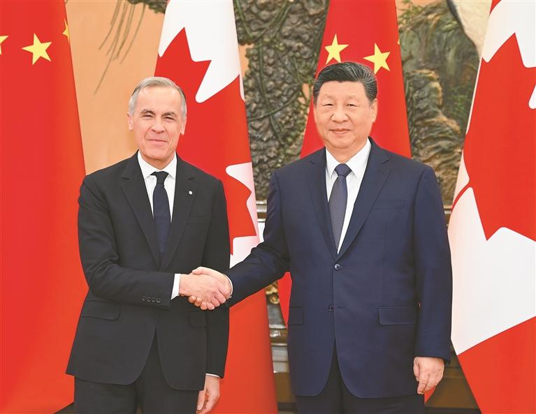ཞི་ཅིན་ཕིང་གིས་ཀྲུང་གོ་དང་ཁ་ན་ཏའི་འབྲེལ་བའི་སྐོར་ལ་དགོངས་འཆར་ཁག་4བཏོན་གནང་ཞིང་། གཅིག་ནས་ཕན་ཚུན་བརྩི་འཇོག་གི་རོགས་ཟླ་བྱེད་དགོས། ཀྲུང་གོ་དང་ཁ་ན་ཏའི་དབར་ཕྱི་འབྲེལ་བཙུགས་ནས་ལོ་55སོང་རིང་། རྒྱལ་ཁབ་གཉིས་པོའི་འབྲེལ་བ་འགོག་རྐྱེན་མང་པོ་བྱུང་བའི་དུས་སྐབས་བརྒྱུད་རྗེས་རྩ་ཆེའི་ལོ་རྒྱུས་ཀྱི་ཉམས་མྱོང་དང་དོན་དངོས་ཀྱི་བློ་འབྱེད་རྩ་ཆེན་བཞག་ཡོད། ཀྲུང་གོ་དང་ཁ་ན་ཏ་རྒྱལ་ཁབ་གཉིས་པོའི་རྒྱལ་བབ་འདྲ་ཡི་མེད་ནའང་ཚང་མས་ཕན་ཚུན་གྱི་བདག་དབང་དང་མངའ་ཁོངས་ཆ་ཚང་ལ་བརྩི་འཇོག་བྱེད་དགོས་པ་དང་། ཕྱོགས་གཉིས་པོས་བདམས་པའི་ཆབ་སྲིད་ལམ་ལུགས་དང་འཕེལ་རྒྱས་ཀྱི་ལམ་བུར་བརྩི་འཇོག་བྱེད་དགོས་པ། རྒྱལ་ཁབ་དང་རྒྱལ་ཁབ་ཕན་ཚུན་མཉམ་གཤིབ་ཡང་དག་བྱེད་པའི་ཐབས་ལམ་མཐའ་འཁྱོངས་བྱེད་དགོས། གཉིས་ནས་ཐུན་མོང་འཕེལ་རྒྱས་ཡོང་བའི་རོགས་ཟླ་བྱེད་དགོས། ཀྲུང་གོ་དང་ཁ་ན་ཏའི་དཔལ་འབྱོར་ཚོང་དོན་འབྲེལ་བའི་ངོ་བོ་ནི་གཉིས་ཁེ་གཉིས་ཕན་ཡིན་པས་ཕྱོགས་གཉིས་ཀར་མཉམ་ལས་ཁྲོད་ནས་ཕན་པ་ཐོབ་ཀྱི་ཡོད། ཀྲུང་གོའི་སྤུས་ཚད་མཐོ་བའི་འཕེལ་རྒྱས་དང་ཆུ་ཚད་མཐོ་བའི་སྒོ་དབྱེས་ཀྲུང་གོ་དང་ཁ་ན་ཏའི་མཉམ་ལས་ལ་རྒྱུན་མཐུད་ངང་གོ་སྐབས་གསར་པ་མཁོ་འདོན་ཐུབ་རྒྱུ་དང་བར་མཐོངས་གསར་པ་རྒྱ་སྐྱེད་གཏོང་ཐུབ་རྒྱུ་རེད། ཕྱོགས་གཉིས་པོས་མཉམ་ལས་ལ་སྐུལ་འདེད་གཏོང་བའི་ཐད་ཤུགས་མང་ཙམ་རྒྱག་པ་དང་། བཀག་རྒྱའི་གསལ་ཐོ་ཉུང་དུ་གཏོང་གང་ཐུབ་བྱས་ཏེ་སྔར་ལས་གཏིང་ཟབ་དང་རྒྱ་ཁྱབ་ཀྱི་མཉམ་ལས་ལ་བརྟེན་ནས་ཐུན་མོང་གི་ཁེ་ཕན་འབྲེལ་ཐག་རྒྱུན་ཆད་མེད་པར་དམ་དུ་གཏོང་དགོས། གསུམ་ནས་ཕན་ཚུན་ཡིད་ཆེས་བྱེད་པའི་རོགས་ཟླ་བྱེད་དགོས། དམངས་སེམས་འབྲེལ་མཐུད་བྱེད་པ་ནི་ཆེས་རྨང་གཞི་དང་། ཆེས་སྲ་བརྟན། ཆེས་ཡུན་རིང་གི་ཕན་ཚུན་འབྲེལ་མཐུད་ཅིག་ཡིན་པས། ཕྱོགས་གཉིས་པོས་རྒྱལ་ཁབ་གཉིས་པོའི་སློབ་གསོ་དང་། རིག་གནས། ཡུལ་སྐོར། ལུས་རྩལ། ས་གནས་སོགས་ལས་རིགས་ཁག་གི་སྤེལ་རེས་མཉམ་ལས་ལ་ཤུགས་སྣོན་རྒྱག་རྒྱུར་སྐུལ་ལྕག་བཏང་ནས། མི་སྣ་འགྲོ་འོང་ལ་སྟབས་བདེ་སྐྲུན་པ་དང་དམངས་འདོད་ཀྱི་རྨང་གཞི་བརྟན་དུ་གཏོང་དགོས། བཞི་ནས་ཕན་ཚུན་རོགས་ལས་བྱེད་པའི་རོགས་ཟླ་བྱེད་དགོས། ཁ་ཕྲལ་དུ་གནས་པའི་འཛམ་གླིང་གིས་མིའི་རིགས་ལ་འཕྲད་པའི་ཐུན་མོང་གི་འགྲན་སློང་ལ་ཁ་གཏད་གཅོག་མི་ཐུབ་པས། ཐག་གཅོད་ཐབས་ལམ་ནི་ཕྱོགས་མང་རིང་ལུགས་ངོ་མ་སྲུང་སྐྱོང་དང་ལག་ལེན་བསྟར་ནས། མིའི་རིགས་ཀྱི་ལས་དབང་གཅིག་མཐུན་ཚོགས་པ་འཛུགས་པར་སྐུལ་འདེད་གཏོང་དགོས་པ་དེ་ཡིན། ཀྲུང་གོ་ཕྱོགས་ཀྱིས་ཁ་ན་ཏ་ཕྱོགས་དང་མཉམ་དུ་མཉམ་འབྲེལ་རྒྱལ་ཚོགས་དང་། རྒྱལ་ཁབ་ཉི་ཤུ་ཚོགས་པ། ཨེ་ཤེ་ཡ་དང་ཞི་བདེ་རྒྱ་མཚོ་ཆེན་པོ་ཁུལ་གྱི་