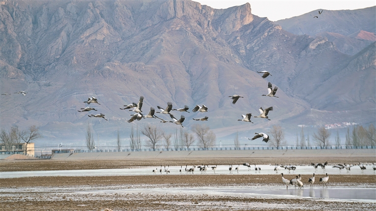 ལྷ་ས་གྲོང་ཁྱེར་ལྷུན་གྲུབ་རྫོང་ཁྲུང་ཁྲུང་སྐེ་ནག་རང་བྱུང་སྲུང་སྐྱོང་ཁུལ་དུ་དགུན་སྒྲོལ་གྱི་ཁྲུང་ཁྲུང་སྐེ་ནག་འབོར་ཆེན་ཞིང་ནང་དང་མུ་ཁར་བག་ཕེབས་ངང་ཟས་འཚོལ་བཞིན་ཡོད། རྒྱང་རིང་ནས་ཡོང་བའི་ཁྲུང་ཁྲུང་སྐེ་ནག་དེ་དག་སང་ལོའི་ཟླ་གསུམ་པ་ནས་བཞི་པའི་བར་འདི་གར་འཚོ་སྡོད་བྱེད་ཀྱི་ཡོད། ཁྲུང་ཁྲུང་སྐེ་ནག་ནི་རྒྱལ་ཁབ་ཀྱི་རིམ་པ་དང་པོའི་སྲུང་སྐྱོབ་སྲོག་ཆགས་ཡིན་པ་མ་ཟད། ས་མཐོར་འཚོ་གནས་དང་སྐྱེ་འཕེལ་བྱེད་མཁན་ཁྲུང་ཁྲུང་གི་རིགས་འབའ་ཞིག་དེའང་ཡིན།