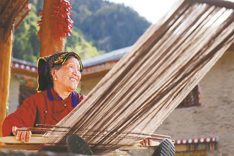 འདི་ནི་བོད་རིགས་བུད་མེད་ཀྱིས་ཐགས་ལས་བྱེད་བཞིན་པ།