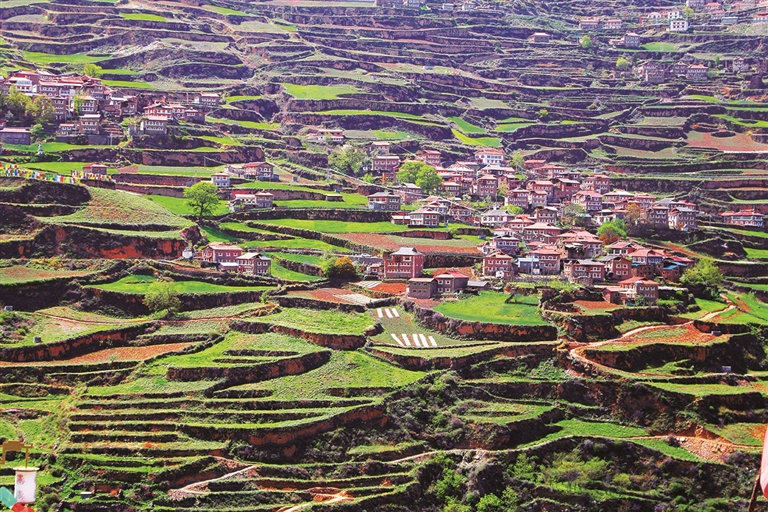 ཉེ་ཆར། ཚེ་དགེ་གྲོང་ཚོར་ཨར་སྐྲུན་བཟོ་པ་མི་ཉུང་བ་ཞིག་སླེབས་པ་དང་། ལག་པས་བརྡར་བའི་རྡོ་དང་རང་བྱུང་རྡོ་ལེབ་སྤྱད་ནས་འགྲོ་ལམ་བཟོས་པ་དང་བོད་བཟོའི་མེ་ཏོག་བརྐོ་རྩལ་སྤྱད་ནས་སྒོ་དང་སྒེའུ་ཁུང་ལ་ཉམས་གསོ་བྱས་པས་གྲོང་ཚོའི་རྣམ་པར་འགྱུར་ལྡོག་ཆེན་པོ་བྱུང་ཡོད།