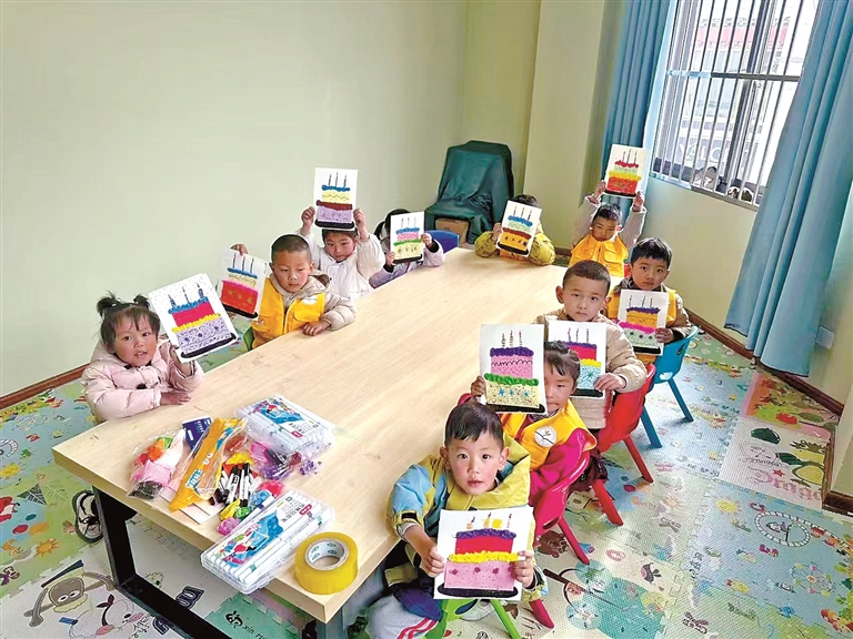 དགུན་གསེང་རིང་ཁྲེང་ཀོན་ཆུས་ཀྱིས་ཁོངས་གཏོགས་ཁུལ་གྱི་བཟའ་མི་གཉིས་ཀ་ལས་བྱེད་ལས་བཟོ་ཡིན་པའི་ཁྱིམ་ཚང་གི་ཕྲུ་གུར་བཅོལ་ཉར་ལྟ་སྐྱོང་གི་ཞབས་འདེགས་ཞུས་ཤིང་། འདི་ནི་ཕྲུ་གུ་ཚོས་རང་ཉིད་ཀྱི་རི་མོའི་བརྩམས་ཆོས་སྟོན་བཞིན་པ།