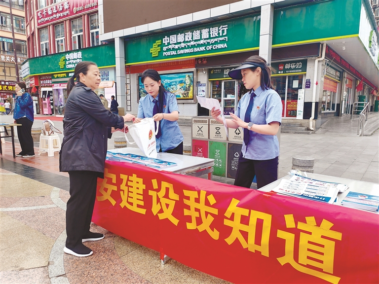 འདི་ནི་ཆབ་མདོ་གྲོང་ཁྱེར་ཁ་རུབ་ཆུས་ཞིབ་དཔྱོད་ཁང་གི་ལས་མིས་དྲིལ་བསྒྲགས་ལག་དེབ་སྤྲོད་བཞིན་པ།