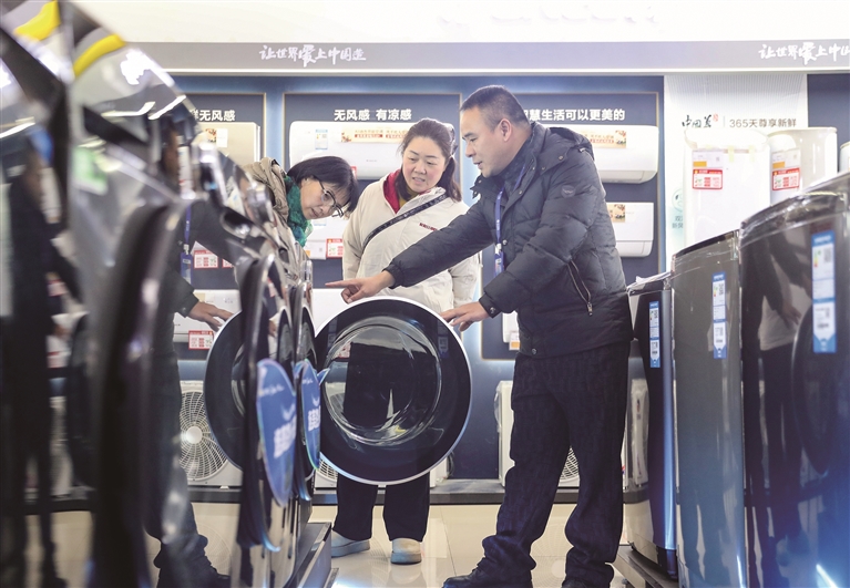 ད་ལོའི་འཛད་ཟོག་རྙིང་པ་གསར་པར་བརྗེ་བའི་སྲིད་ཇུས་དོན་འཁྱོལ་བྱས་ནས་ཟླ་གཅིག་སོང་ཞིང་། 2026ལོར་སྒོར་དུང་ཕྱུར་625ཡི་དུས་ཡུན་ཆེས་རིང་བའི་དམིགས་བསལ་རྒྱལ་བུན་གྱིས་འཛད་ཟོག་རྙིང་པ་གསར་པར་བརྗེ་བར་རྒྱབ་སྐྱོར་བྱེད་པའི་མ་དངུལ་འཆར་གཞི་ཁག་དང་པོས་ས་གནས་ཁག་གི་འཛད་སྤྱོད་ཁྲོམ་རའི་གསོན་ཤུགས་རྒྱས་པར་སྐུལ་ཁྲིད་ཐུབ་རྒྱུ་རེད། ས་གནས་ཁག་དང་དྲ་ཐོག་དྲ་ཕྱིའི་ལས་སྟེགས་ཀྱིས་ལྷན་སྦྱར་བྱེད་སྒོ་དང་ཞབས་ཞུའི་ལས་དོན་སྤེལ་ནས་འཛད་སྤྱོད་པར་སྟབས་བདེ་བསྐྲུན་ཞིང་། འདི་ནི་སི་ཁྲོན་ཞིང་ཆེན་ཧྭ་དབྱིང་གྲོང་ཁྱེར་གྱི་གྲོང་མིས་ཚོང་ཁང་ནས་གོས་འཁྲུ་འཕྲུལ་ཆས་ཉོ་བཞིན་པ།