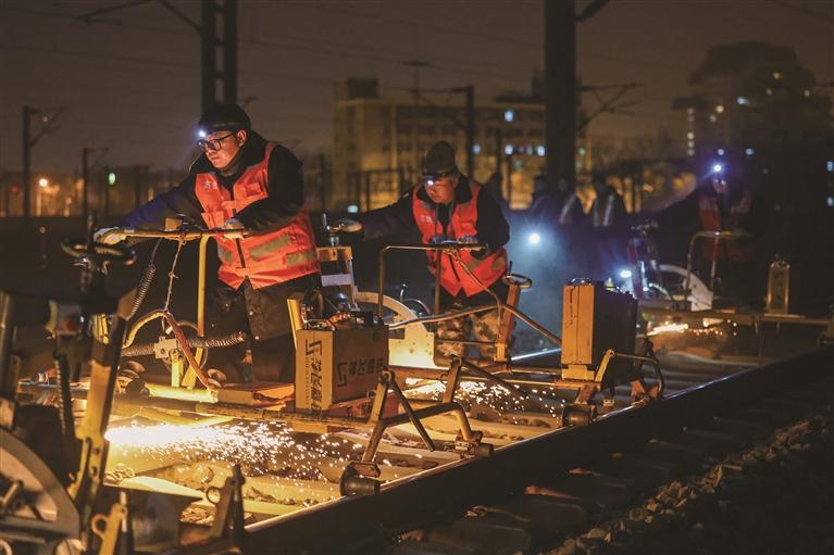 འདི་ནི་ཟླ་1ཚེས་30ཉིན་གྱི་ཐོ་རེངས་སུ། པེ་ཅིང་ལྷོ་ཚུགས་ཅིང་ཅིན་གྲོང་ཁྱེར་དབར་གྱི་ལམ་ཐིག་ཐོག་ལྕགས་ལམ་ལས་དོན་པས་དཔྱིད་གསར་སྐྱེལ་འདྲེན་གྱི་འགྲུལ་བཞུད་སྐྱིད་སྣང་དོད་པ་དང་བདེ་འཇགས་ཡོང་བའི་འགན་ལེན་བྱེད་བཞིན་པ།
