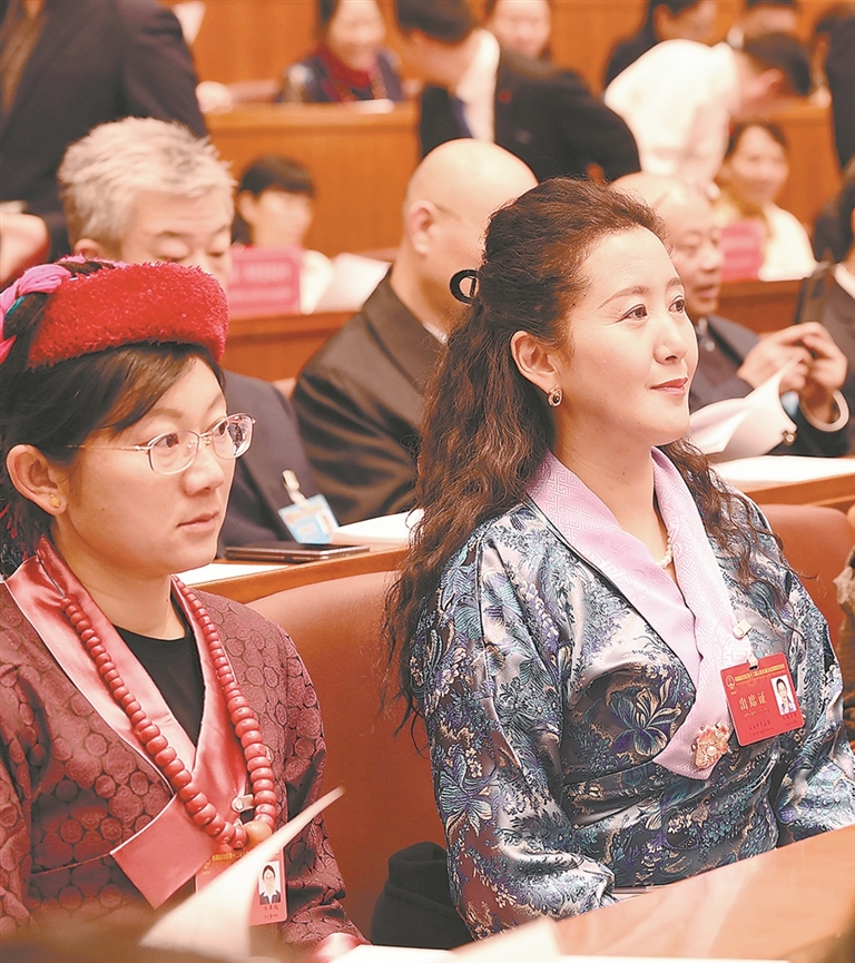 འཐུས་མིས་སྲིད་གཞུང་གི་ལས་དོན་སྙན་སྒྲོན་ནན་ཏན་ངང་གསན་བཞིན་པ།