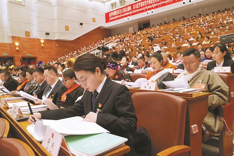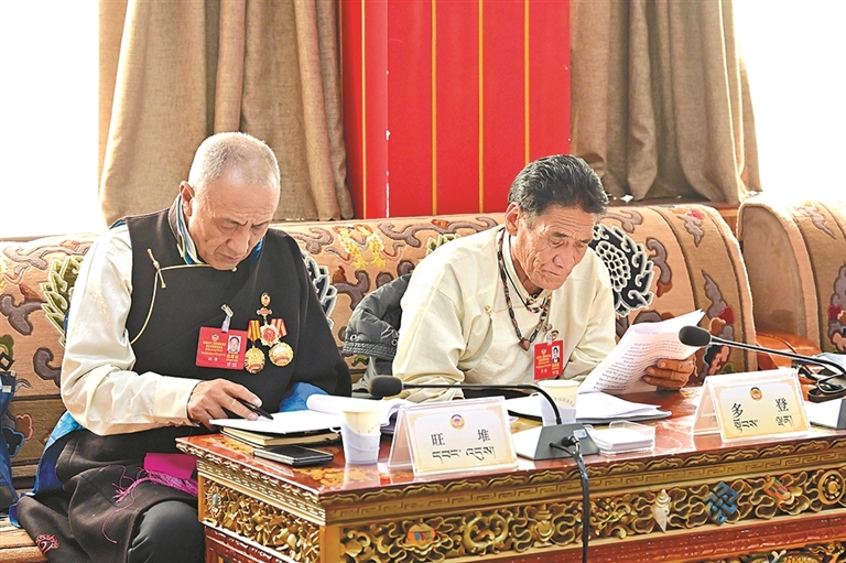 ཞིང་ལས་དང་གྲོང་གསེབ་རིགས་ཁོངས་ཀྱི་སྲིད་གྲོས་ཨུ་ཡོན་གྱིས་སྲིད་གཞུང་གི་ལས་དོན་སྙན་སྒྲོན་ལ་གྲོས་བསྡུར་གནང་བཞིན་པ།