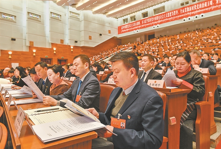 འདི་ནི་མི་དམངས་འཐུས་ཚོགས་ཀྱི་འཐུས་མིས་ལས་དོན་སྙན་སྒྲོན་ནན་ཏན་ངང་གསན་བཞིན་པ།