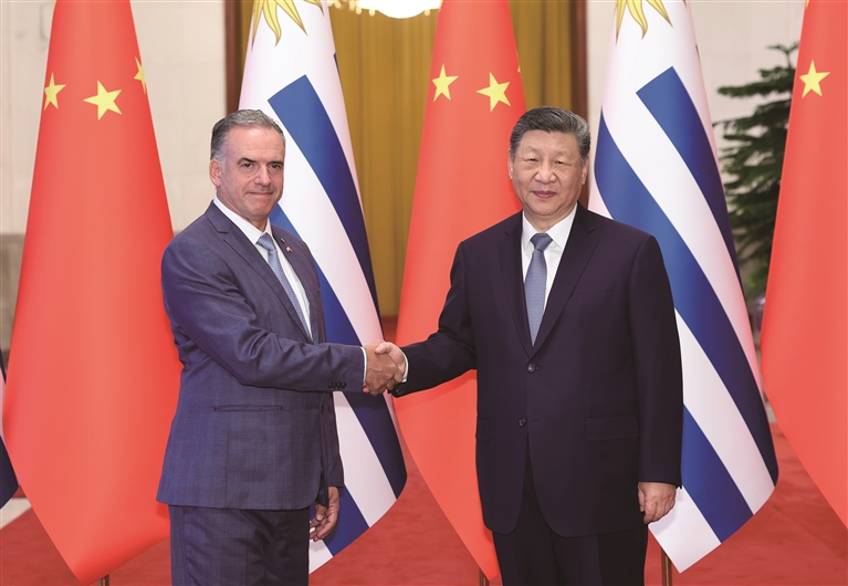 ཞི་ཅིན་ཕིང་གིས་གསུངས་དོན། དེང་སྐབས་འཛམ་གླིང་ལ་ལོ་བརྒྱར་འཕྲད་མ་མྱོང་བའི་འགྱུར་ལྡོག་ཆེན་པོ་འབྱུང་བཞིན་ཡོད་པ་དང་། རྒྱལ་སྤྱིའི་དུས་བབ་འགྱུར་ལྡོག་དང་ཟང་ཟིང་ཆེ་བ། ཕྱོགས་རྐྱང་པའི་བཙན་ཤེད་ཇེ་སྡུག་ཏུ་འགྲོ་བཞིན་ཡོད། ཝུ་ར་ཀུའེ་ཡིས“རྒྱལ་ཁབ་77ཚོགས་པ་དང་ཀྲུང་གོའི”རེས་སྐོར་ཀྲུའུ་ཞིའི་རྒྱལ་ཁབ་ཀྱི་འགན་འཁུར་བར་ཀྲུང་གོ་ཕྱོགས་ཀྱིས་རྒྱབ་སྐྱོར་བྱས་ཏེ། ཝུ་ར་ཀུའེ་ཕྱོགས་དང་མཉམ་དུ་གོ་ལ་ཧྲིལ་པོའི་ལྷོ་ཕྱོགས་ཀྱི་མཐུན་སྒྲིལ་མཉམ་ལས་ལ་ཤུགས་སྣོན་བརྒྱབ་ནས་འདྲ་མཉམ་དང་གོ་རིམ་ལྡན་པའི་འཛམ་གླིང་སྣེ་མང་ཅན་དང་། ཀུན་ཕན་བསྟུན་མཁས་ཀྱི་དཔལ་འབྱོར་གོ་ལ་ཅན་ལ་ཐུན་མོང་ཐོག་སྐུལ་འདེད་གཏོང་བ་དང་། ལག་གདང་དཔུང་སྦྲེལ་གྱིས་ཐུན་མོང་ཐོག་འཕེལ་རྒྱས་དོན་གཉེར་བྱས་ཏེ། མིའི་རིགས་ཀྱི་ལས་དབང་གཅིག་མཐུན་ཚོགས་པ་འཛུགས་ཆེད་ལེགས་སྐྱེས་དེ་བས་ཆེ་བ་འབུལ་འདོད་ཡོད། ཀྲུང་གོ་ཕྱོགས་ཀྱིས་ཐོག་མཐའ་བར་གསུམ་དུ་ཀྲུང་གོ་དང་ལ་ཏིང་མེ་གླིང་གི་འབྲེལ་བར་མཐོང་ཆེན་བྱས་ཏེ། ལ་ཏིང་མེ་གླིང་དང་ཅ་ལེ་པིའི་རྒྱལ་ཁབ་ཀྱིས་རང་ངོས་ཀྱི་བདག་དབང་དང་། བདེ་འཇགས། འཕེལ་རྒྱས་ཀྱི་ཁེ་ཕན་བཅས་ལ་སྲུང་སྐྱོང་བྱེད་པར་རྒྱབ་སྐྱོར་བྱེད་པ་དང་། ཝུ་ར་ཀུའེ་ཡིས་ལ་ཏིང་མེ་གླིང་དང་ཅ་ལེ་པིའི་རྒྱལ་ཁབ་ཀྱི་གཅིག་མཐུན་ཚོགས་པ་དང་དེ་བཞིན་ལྷོ་ཕྱོགས་ཀྱི་ཐུན་མོང་ཁྲོམ་རའི་རེས་སྐོར་ཀྲུའུ་ཞིའི་རྒྱལ་ཁབ་ཀྱི་འགན་འཁུར་རྒྱུར་རྒྱབ་སྐྱོར་བྱས་ནས། ཝུ་ར་ཀུའེ་ཕྱོགས་དང་ས་ཁུལ་རྒྱལ་ཁབ་དང་མཉམ་དུ་ཀྲུང་གོ་དང་ལ་ཏིང་མེ་གླིང་གི་ལས་དབང་གཅིག་མཐུན་ཚོགས་པ་འཛུགས་རྒྱུ་གཏིང་ཟབ་དང་ཏན་ཏིག་ཡོང་བར་སྐུལ་འདེད་གཏོང་འདོད་ཡོད།