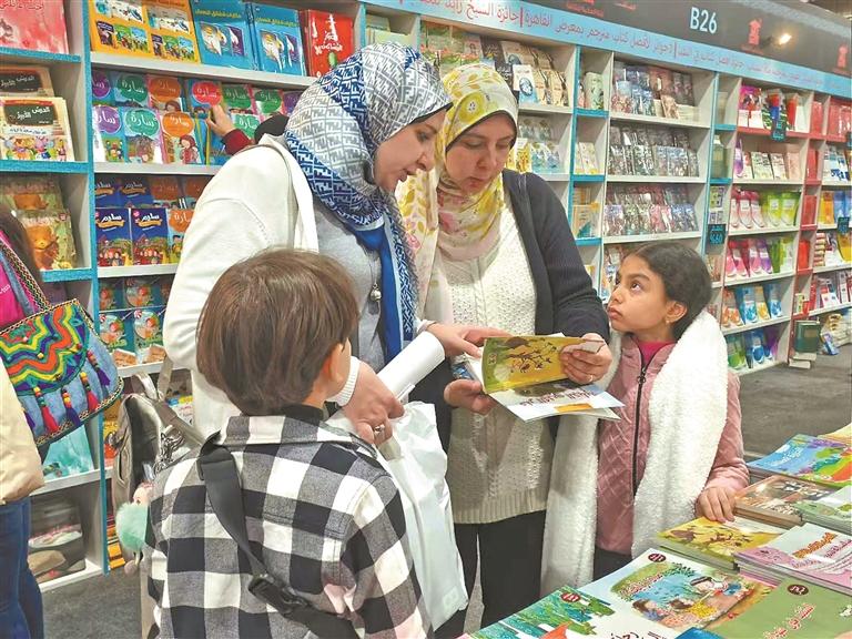 དཔེ་དེབ་འགྲེམས་སྟོན་བྱ་ཡུལ་དུ། དབུ་སྐྲ་དུང་ལྟར་དཀར་བའི་རྒན་རྒོན་ཞིག་གིས《ཀྲི་ཅང་གཏམ་གསར》ནན་ཏན་ངང་ལྟ་ཀློག་བྱེད་བཞིན་ཡོད་པ་དང་། དེའི་འཁྲིས་སུ་གཞོན་ནུ་མ་ཞིག་གིས་བར་བཅུག་རི་མོ་ཡོད་པའི《རི་མཚོའི་མདོ》ལ་ལྟ་བཞིན་ཡོད། ལོ་ན་མི་འདྲ་བ་དང་རྒྱབ་ལྗོངས་མི་འདྲ་བའི་ཨེ་ཅིབ་ཀྱི་ཀློག་པ་པོས་ཀྲུང་གོའི་འཕེལ་རྒྱས་དང་ཀྲུང་གོའི་རིག་གནས་ཤེས་འདོད་ཆེན་པོ་བྱེད་ཀྱི་ཡོད།