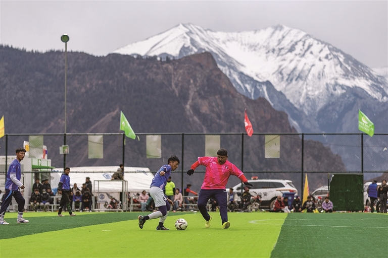འདི་ནི་བོད་ལྗོངས་ཆབ་མདོ་གྲོང་ཁྱེར་ལྷོ་རོང་རྫོང་དམར་རི་གྲོང་རྡལ་གྱི“ལོ་གསར་བསུ་བའི་བུམ་པའི”རྐང་རྩེད་སྤོ་ལོའི་འགྲན་བསྡུར་གྱི་འགོ་ཚུགས་མཛད་སྒོའི་ཐོག་འཐུས་མིའི་རུ་ཁག་ཁག་འགྲན་རར་སྐྱོད་བཞིན་པ།