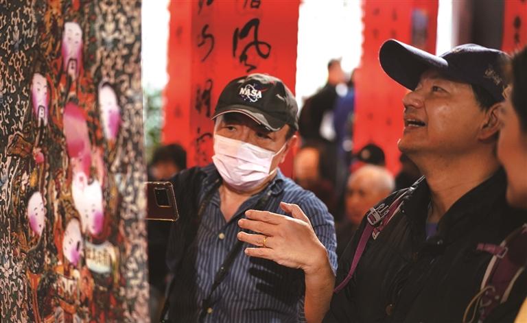འདི་ནི“ཐའེ་དབན་རྒྱ་ཤོག་གི་ངོགས་གཉིས་ཀྱི་སྒྱུ་རྩལ་མཁས་པའི་དཔྱིད་གསར་ཆ་ཡིག་དང་། ལོ་གསར་རི་མོ། རབ་བཏགས་རི་མོའི་འགྲེམས་སྟོན”སྐབས་དང་པོ་གཉེར་ཡུལ་དུ། ལྟད་མོ་བས་འགྲེམས་སྟོན་བརྩམས་ཆོས་ལ་ལྟ་བཞིན་པ།