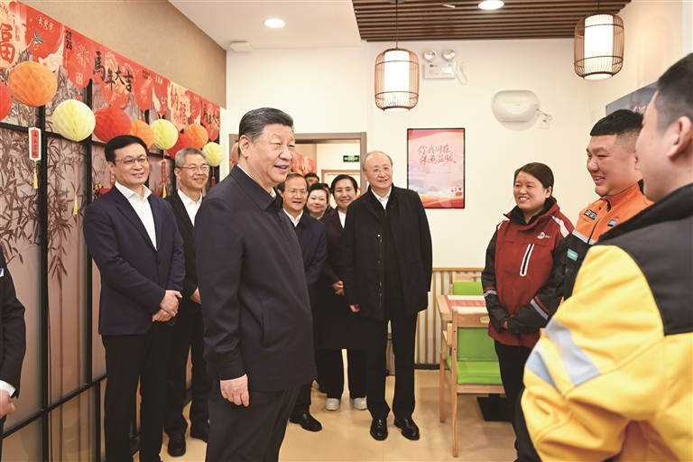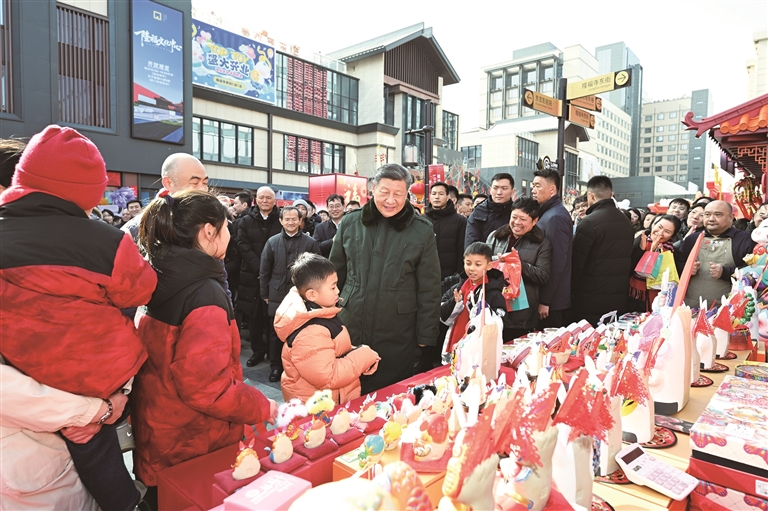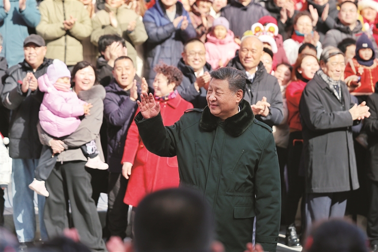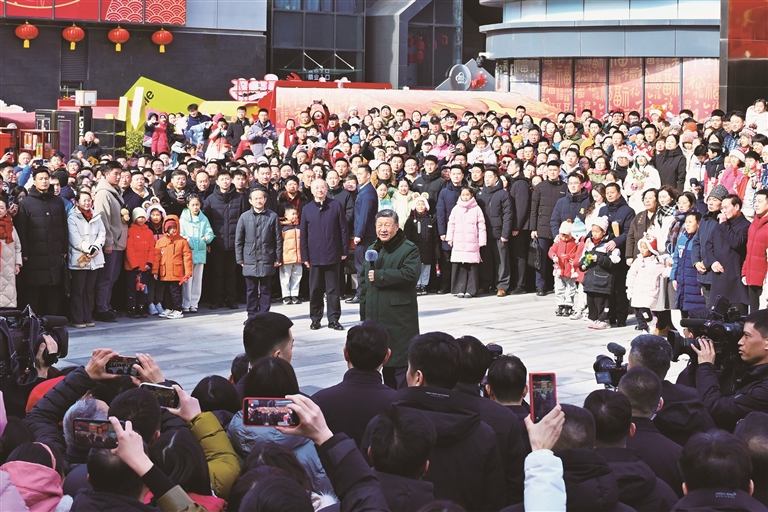 ཞི་ཅིན་ཕིང་གིས་དཔྱིད་གསར་དུས་ཆེན་གྱི་སྔ་ནུབ་ལ་པེ་ཅིང་དུ་གཞི་རིམ་གྱི་ལས་བྱེད་པ་དང་མང་ཚོགས་ལ་བྱམས་བརྩེའི་འཚམས་འདྲི་གནང་བ།