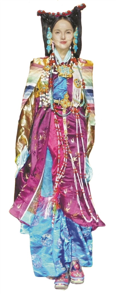 བོད་ལྗོངས་མཛེས་རྩལ་ཁང་དུ་འགྲེམས་སྟོན་བྱས་པའི་ལྷ་སའི་རྫོང་དང་ཆུས་ཁག་གི་མཚོན་བྱེད་རང་བཞིན་གྱི་སྲོལ་རྒྱུན་རྒྱན་གོས་ཡིན་པ།