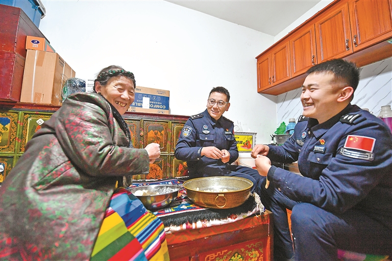 ཤར་གསིང་མ་གྲོང་རྡལ་མཐའ་མཚམས་མངགས་གཏོང་ཁང་གི་སུའོ་ཀྲང་ཡེ་ཤེས་ཕུན་ཚོགས་ཀྱིས་དགའ་བའི་དགོད་སྒྲས་ཁེངས་པའི་རྣམ་པར་ལྟ་བཞིན“ལོ་ལྟར་ལོ་གསར་རིང་ཁྱིམ་དུ་ལོག་ཐུབ་ཀྱི་མེད་ནའང་ཁོངས་གཏོགས་ཁུལ་གྱི་མང་ཚོགས་ཀྱིས་ང་ཚོ་ནང་མི་ལྟ་བུར་བརྩི་གི་ཡོད་པས་ཚ་སོབ་སོབ་ཀྱི་དགུ་ཐུག་འཐུང་རྒྱུ་ཡོད”ཅེས་མྱོང་ཚོར་ཟབ་མོས་བཤད།