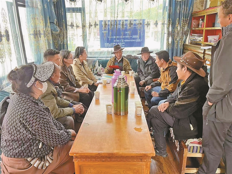 འདི་ནི་ལྷ་ས་གྲོང་ཁྱེར་སྟོད་ལུང་བདེ་ཆེན་ཆུས་ཁྲིམས་འཛིན་ཅུས་རྒུ་རུམ་གྲོང་རྡལ་ཁྲིམས་འཛིན་ཁང་གི་ལས་དོན་པས་མང་ཚོགས་ཀྱི་རེ་ཞུ་ཤེས་རྟོགས་བྱེད་བཞིན་པ།