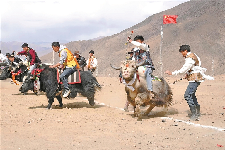 འདི་ནི་ལྷ་ས་གྲོང་ཁྱེར་སྟག་རྩེ་ཆུས་གཙང་རྟོགས་ཤང་དུ་གཡག་རྒྱུག་འགྲན་བསྡུར་བྱེད་བཞིན་པ།
