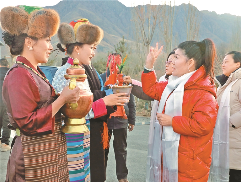 ཡུལ་སྐོར་བས་བོད་རིགས་ཀྱི་གོམས་སྲོལ་མྱོང་རོལ་བྱེད་བཞིན་པ།