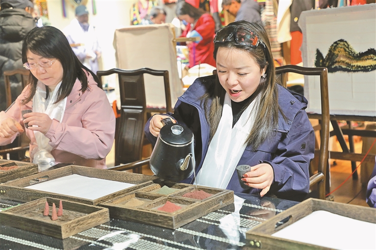 ཡུལ་སྐོར་བ་གཉིས་ཀྱིས་སྤོས་སྦྱོར་བྱེད་སྟངས་ཉམས་ལེན་བྱེད་བཞིན་པ།