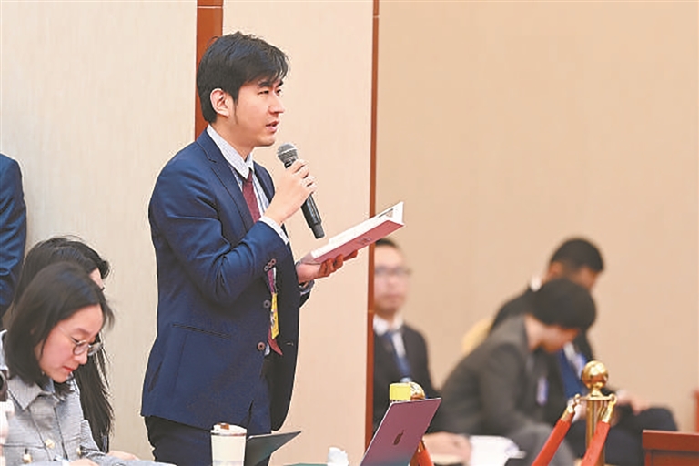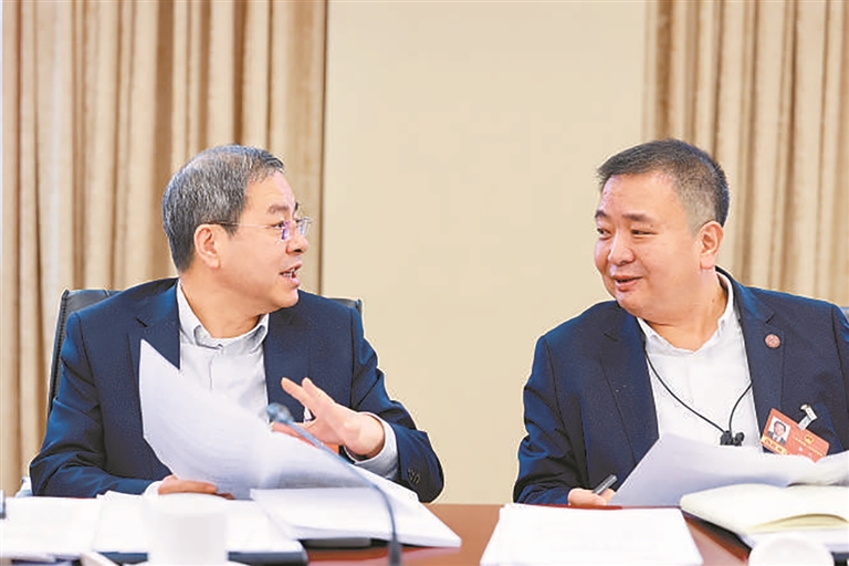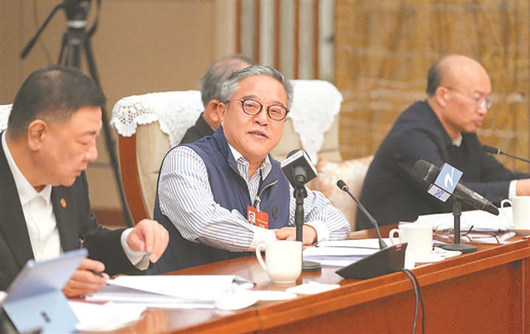 འདི་ནི་ཟླ་3ཚེས་7ཉིན། 《མི་དམངས་ཉིན་རེའི་ཚགས་པར》གྱི་གསར་འགོད་པ་ལི་ཅུན་ཆང་གིས་ཧའེ་ནན་འཐུས་མི་ཚོགས་པའི་ཚོགས་པ་དང་ཚོཌ་ཆུང་སྒོ་དབྱེའི་ཚོགས་འདུར་དྲི་བ་འདོན་བཞིན་པ།