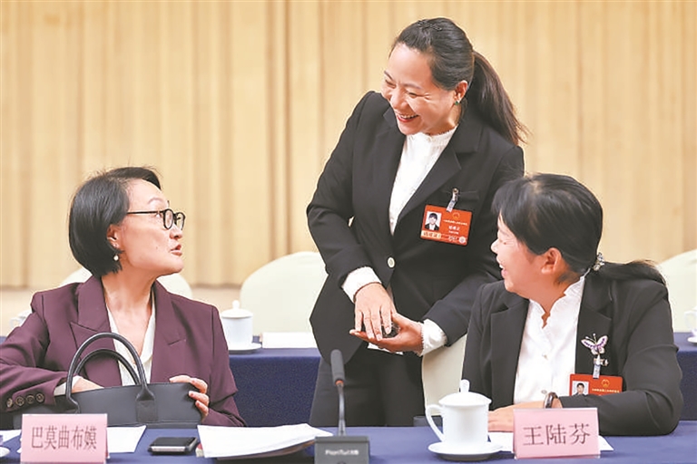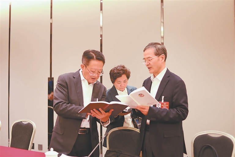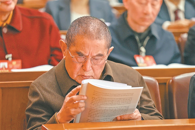 དམངས་ཀྱི་བློ་གྲོས་བསྡུས། སྟོབས་ཤུགས་གཅིག་ཏུ་བསྒྲིལ། འཐུས་མི་དང་ཨུ་ཡོན་ཚོས་དཔྱིད་དུས་ཀྱི་ཚོགས་ཆེན་གཟབ་རྒྱས་ལ་མཉམ་དུ་ཞུགས་ཏེ། “ལོ་ལྔ་ཚན་བཅོ་ལྔ་པའི”འཕེལ་རྒྱས་ཀྱི་ཇུས་ཆེན་ལ་མཉམ་དུ་གྲོས་བསྡུར་དང་ཀྲུང་གོའི་ལུགས་ཀྱི་དེང་རབས་ཅན་འཛུགས་སྐྲུན་གྱི་ལེའུ་གསར་པར་མཉམ་དུ་དོན་གཉེར་བྱེད་བཞིན་ཡོད།