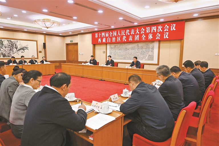 ཟླ་3ཚེས་12ཉིན། བོད་ཀྱི་འཐུས་མི་ཚོགས་པས་ཚང་འཛོམས་གྲོས་ཚོགས་འཚོགས་ནས་རྒྱལ་ཡོངས་མི་དམངས་འཐུས་ཚོགས་རྒྱུན་ལས་ཨུ་ཡོན་ལྷན་ཁང་གི་ལས་དོན་སྙན་སྒྲོན་དང་། ཆེས་མཐོའི་མི་དམངས་ཁྲིམས་ཁང་གི་ལས་དོན་སྙན་སྒྲོན། ཆེས་མཐོའི་མི་དམངས་ཞིབ་དཔྱོད་ཁང་གི་ལས་དོན་སྙན་སྒྲོན་བཅས་སྐོར་གྱི་གྲོས་ཆོད་འཆར་ཟིན་ལ་གྲོས་ཞིབ་གནང་བ་དང་། བཅའ་ཁྲིམས་ལེགས་བཅོས་ལས་དོན་སྤེལ་ཚུལ་དང་འབྲེལ་ཡོད་བཅའ་ཁྲིམས་དང་གཏན་འབེབས་ཀྱི་ཐག་གཅོད་བསམ་འཆར་སྙན་ཞུར་ཆོག་མཆན་སྤྲོད་རྒྱུའི་སྐོར་གྱི་གཏན་འབེབས་འཆར་ཟིན་ལ་གྲོས་ཞིབ་གནང་བ་རེད།