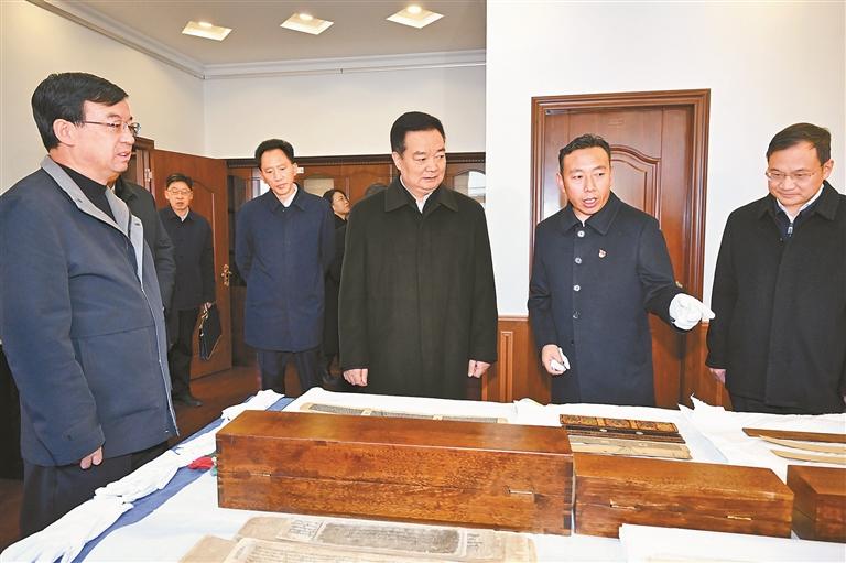 རང་སྐྱོང་ལྗོངས་རིག་དངོས་ཅུས་སུ་ཝང་ཅུན་ཀྲེང་གིས་རྒྱལ་ཡོངས་ཀྱི་རིག་དངོས་ཡོངས་བཤེར་ཐེངས་བཞི་པ་དང་ཤིང་ཏ་ལའི་ལོ་མའི་དཔེ་ཆ་སོགས་གནའ་དཔེ་དང་ཚད་ལྡན་ཡིག་ཆ་སྲུང་སྐྱོང་བེད་སྤྱོད་དང་། རིག་གཞུང་ཞིབ་འཇུག རིག་དངོས་བདེ་འཇགས་ལྟ་འདོམས་ལས་སྟེགས་འཁོར་སྐྱོད་སོགས་ཀྱི་གནས་ཚུལ་ངོ་སྤྲོད་ནན་ཏན་ངང་གསན་པ་དང་འབྲེལ་གནའ་རྫས་རྟོག་ཞིབ་ཀྱི་སྔོག་འདོན་གྲུབ་འབྲས་འགྲེམས་སྟོན་ལའང་གཟིགས་ཤིང་། ཁོང་གིས་རིག་དངོས་ཀྱི་ཐོན་ཁུངས་གང་ལེགས་སྤྱད་དེ་བོད་འདི་ཉིད་གནའ་སྔ་མོ་ནས་རླབས་ཆེན་མེས་རྒྱལ་གྱི་ཁ་འབྲལ་ཐབས་མེད་པའི་ཆ་ཤས་ཤིག་ཡིན་པ་དང་མི་རིགས་ཁག་གིས་དུས་ཡུན་རིང་པོའི་ནང་འགྲོ་འོང་དང་། སྤེལ་རེས། མཉམ་འདྲེས་བཅས་བྱས་པའི་ལོ་རྒྱུས་ཀྱི་དོན་དངོས་སྔོག་འདོན་དང་། ལེགས་སྒྲིག དྲིལ་བསྒྲགས་བཅས་གཏིང་ཟབ་བྱས་ཏེ། ཀྲུང་ཧྭ་མི་རིགས་གཅིག་མཐུན་ཚོགས་པའི་འདུ་ཤེས་སྔར་བས་བརྟན་པོ་འཛུགས་པ་དང་ཀྲུང་ཧྭ་མི་རིགས་གཅིག་མཐུན་ཚོགས་པ་འཛུགས་སྐྱོང་ལ་སྐུལ་འདེད་གཏོང་དགོས། རིག་དངོས་ཀྱི་ཚན་རྩལ་གསར་གཏོད་ལ་ཤུགས་སྣོན་བརྒྱབ་སྟེ་རིག་དངོས་ཉམས་གསོ་དོ་དམ་དང་བདེ་འཇགས་ལྟ་འདོམས་སོགས་ཀྱི་ལས་སྟེགས་ཡག་པོ་བསྐྲུན་པ་དང་ཡག་པོ་སྤྱད་ནས་རིག་དངོས་སྲུང་སྐྱོབ་དང་། རིག་རྒྱུན་འཛིན་སྐྱོང་། རིག་གནས་དར་རྒྱས་བཅས་ལ་ཚན་རྩལ་གྱི་འདེགས་སྐྱོར་བྱེད་དགོས་ཞེས་གསུངས་པ་རེད།