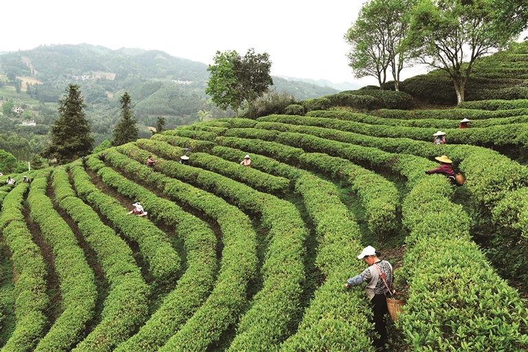 དྭངས་གསལ་དུས་ཚིགས་འཆར་ཉེའི་མཚམས་སུ་ས་གནས་ཁག་གི་ཇ་ཞིང་ར་བར་ཇ་ལོ་གཅིག་རྗེས་གཉིས་མཐུད་ངང་འཐུ་བའི་དུས་སུ་སླེབས་ཏེ། ཇ་འདེབས་ཞིང་པས་ཇ་ལོ་བཏུས་ནས་ཁྲོམ་རར་འདོན་རྒྱུར་བྲེལ་བཞིན་ཡོད་ཅིང་། འདི་ནི་ཟླ་3ཚེས་29ཉིན། ཀོང་ཤིས་ཧོ་ཀྲོའུ་གྲོང་ཁྱེར་ཕིང་ཀུའེ་ཆུས་ཨེ་ཐང་གྲོང་རྡལ་ཕན་ཀུའུ་གྲོང་ཚོར་ཇ་འདེབས་ཞིང་པས་ཇ་ལོ་འཐུ་བཞིན་པ།